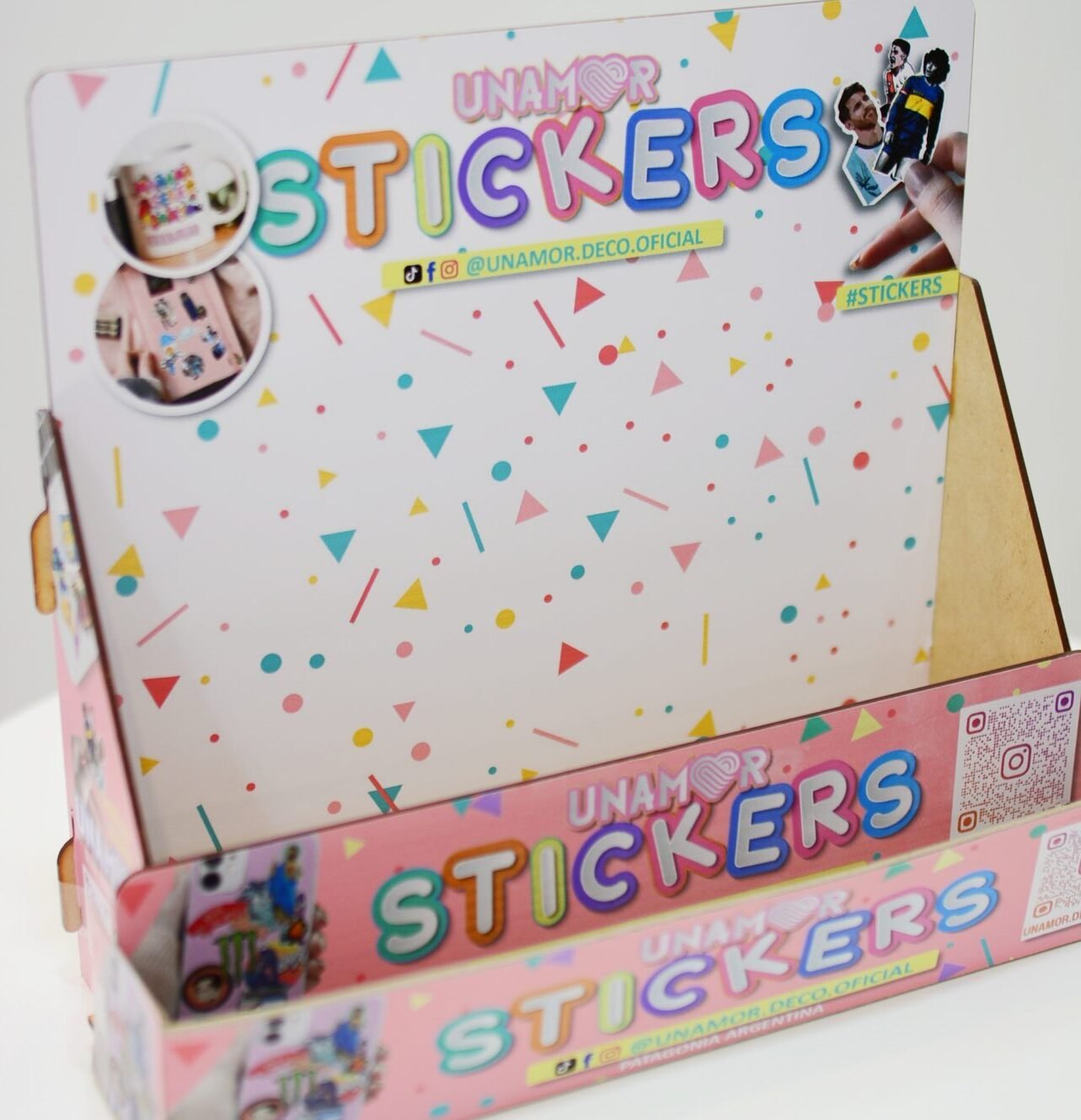 EXHIBIDOR DE MADERA DE 32 X 30X10 CM PLOTEADO CON UNAMOR, DE REGALO!