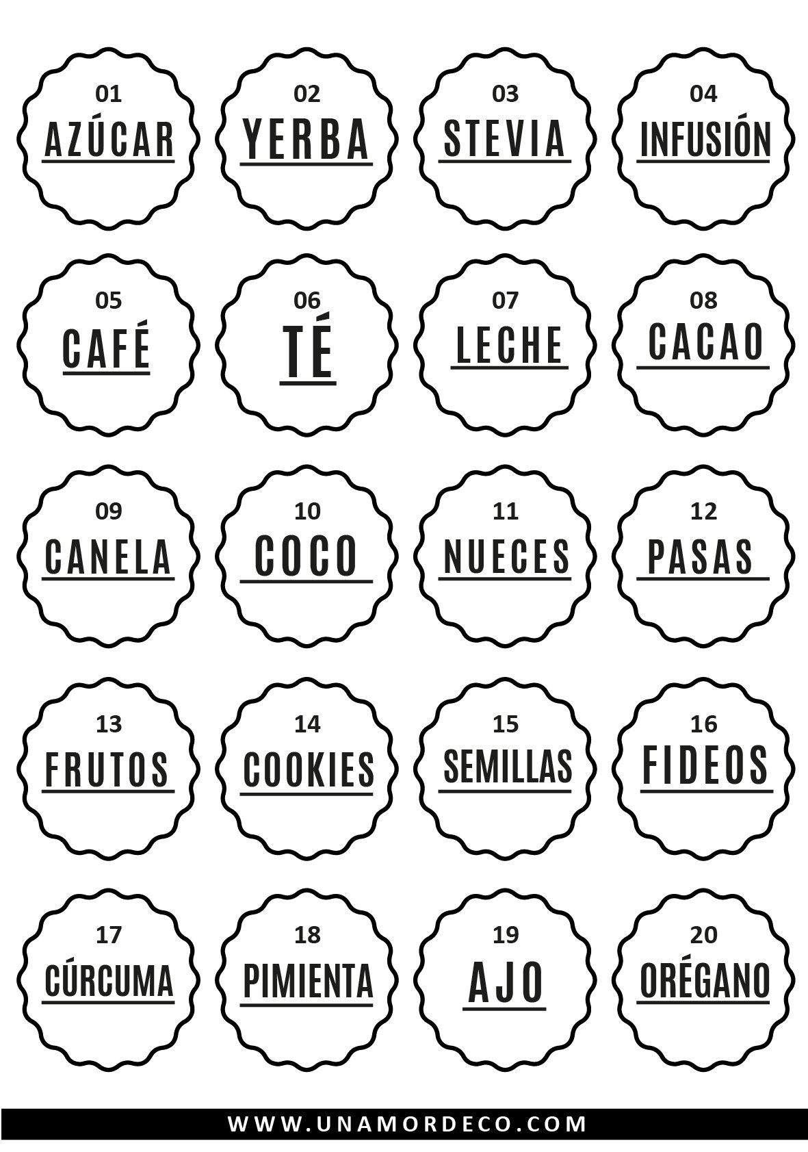 USA ESTAS ETIQUETAS PARA FRASCOS, CERAMICA, PLASTICO!