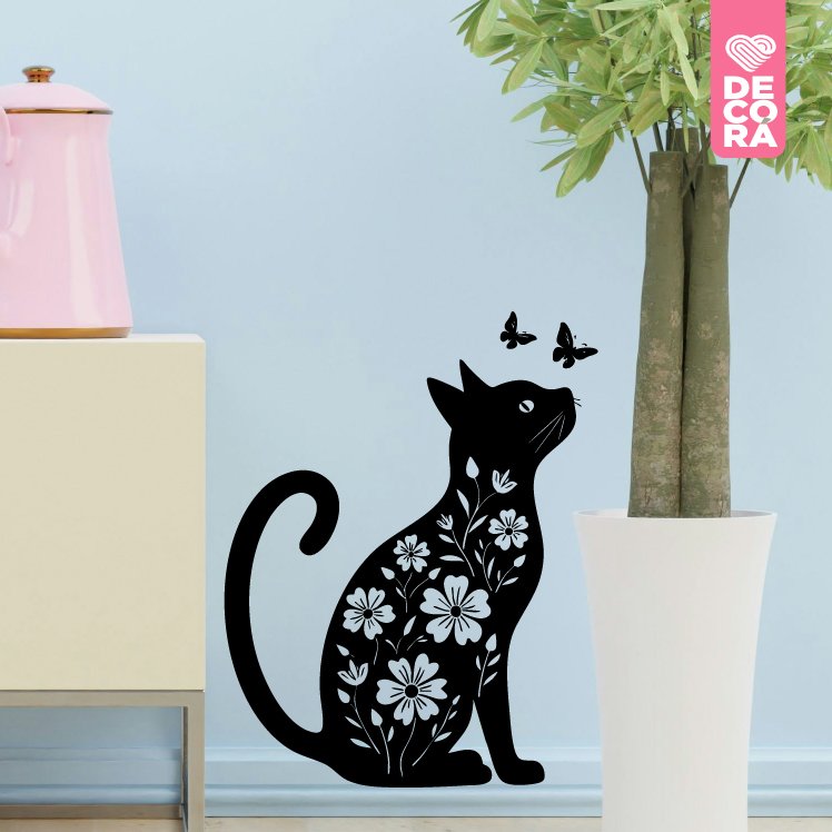 Vinilo Decorativo Gato Floral – Calidez y Estilo en tu Hogar